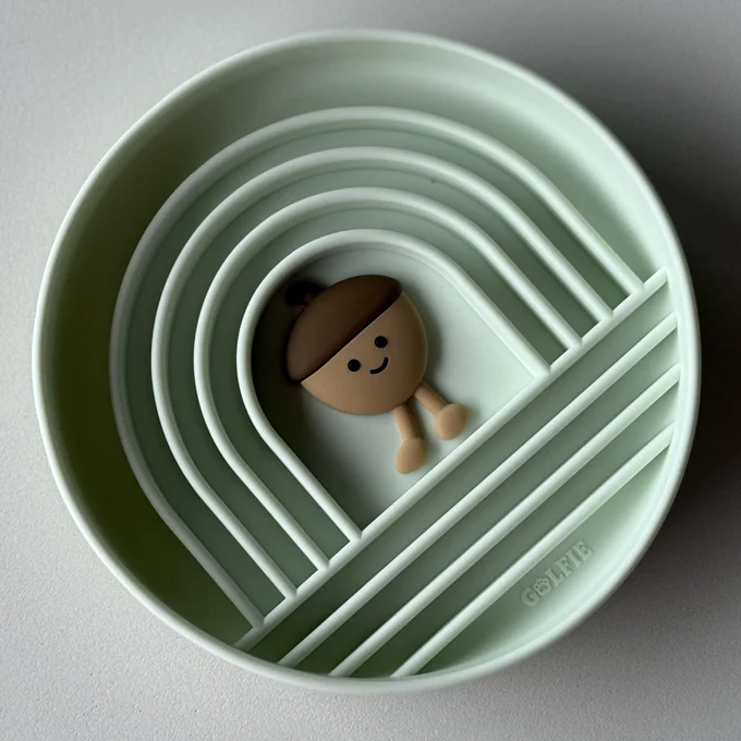 Non-Slip Base: Golfie silicone puzzle bowls come with a non-slip base, featuring suction cups, to keep the bowl stable and secure during mealtime. This prevents the bowl from sliding across the floor or tipping over, promoting a mess-free feeding experience.